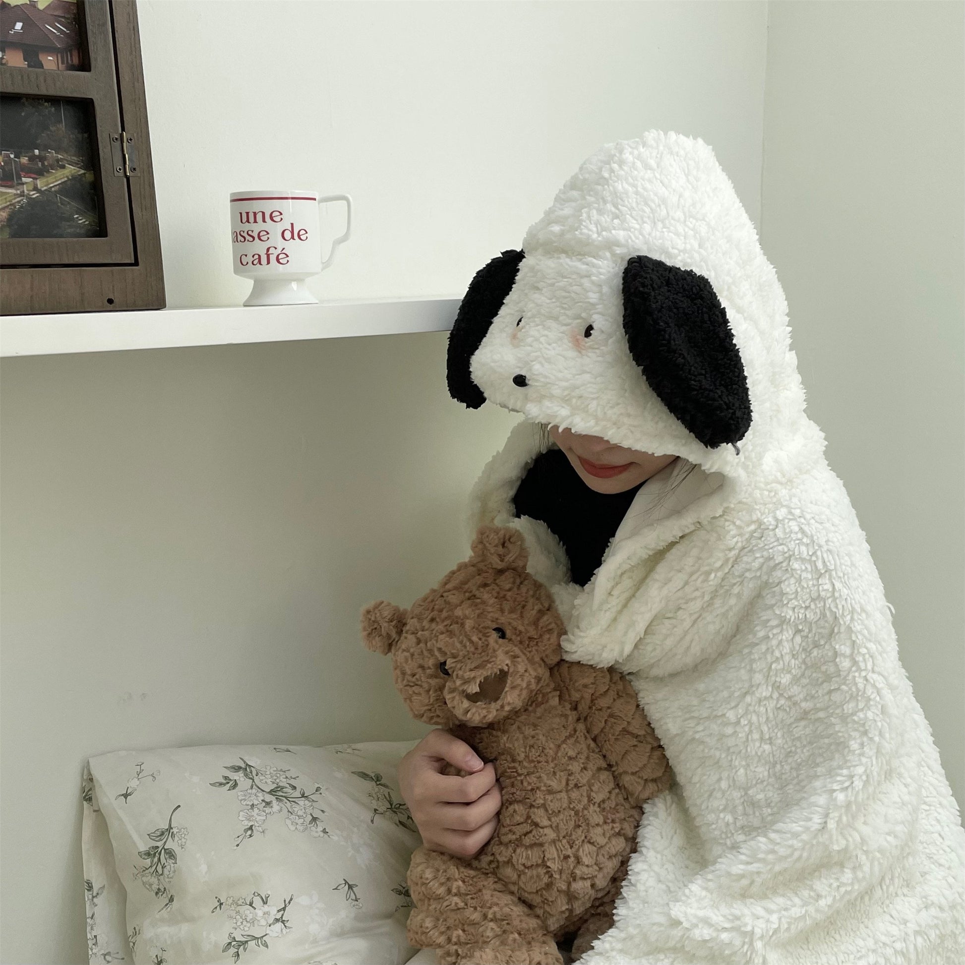 Thick Warm Shawl with Cartoon Bear Plush Design